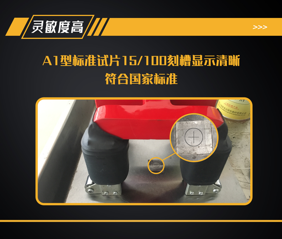 2、靈敏度高,可清晰完整地顯示A1型(15/100)標準試片上的刻槽,符合國家標準;