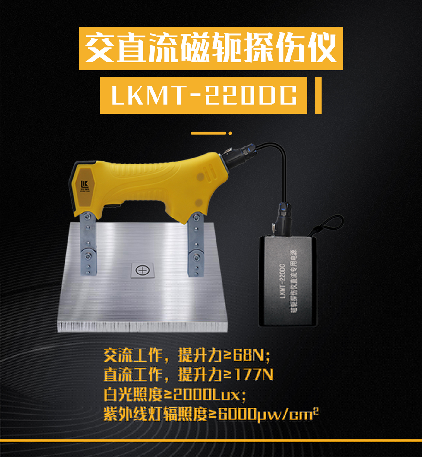 1、LKMT-220DC交直流磁軛探傷儀由D型探頭、電源適配器、鋰電池電源組成;產(chǎn)生交流或直流磁場進(jìn)行探傷。