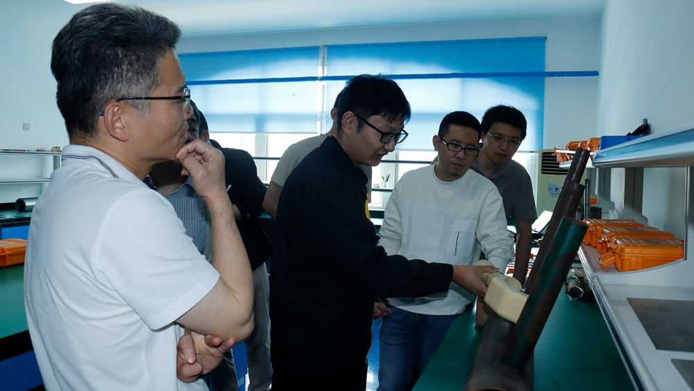 專家組一行參觀了我公司埋地管道實訓基地、無塵車間、研發中心實驗室等,對我公司自主研發的無線式磁粉探傷儀、管道磁粉探傷儀、角焊縫磁粉探傷儀、腐蝕測厚機器人、ACFM交流電磁場檢測儀等設備進行性能測試,均達到預期效果,對我公司研發、生產及售后能力給予高度評價。