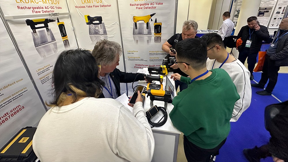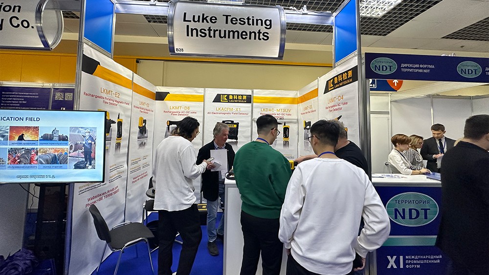 2024年4月15日,濟寧魯科檢測器材有限公司代表團遠赴俄羅斯莫斯科,參加2024年俄羅斯莫斯科NDT展。亮相本次展會的設備有聯合中國石油大學(華東)共同研發的ACFM交流電磁場檢測儀,自主研發的無線式磁粉探傷儀、管道磁粉探傷儀、角焊縫磁粉探傷儀、腐蝕測厚機器人等。儀器一經亮相,便引起國際友人廣泛關注與一致好評。