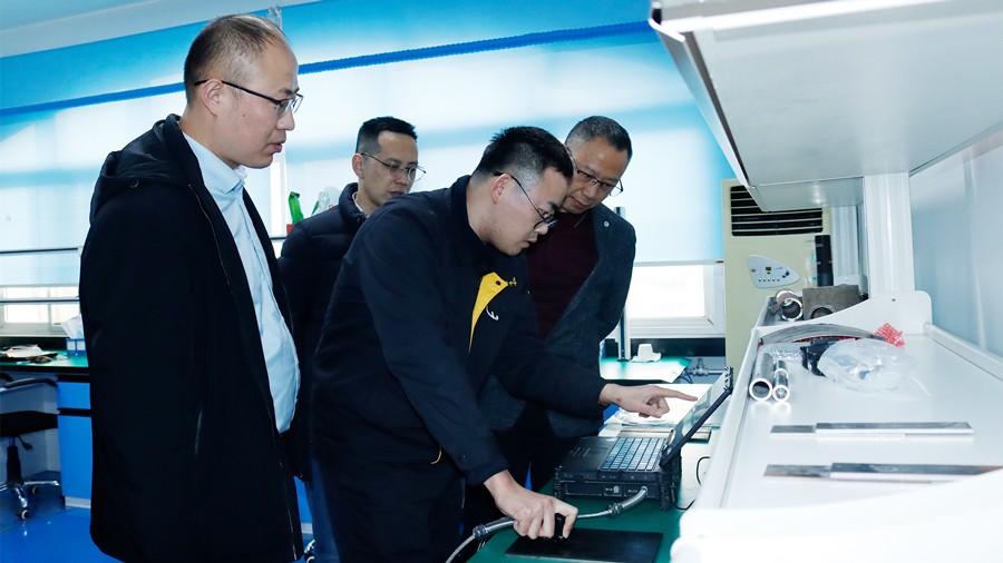 2024年1月10日,廣東省特種設備檢測研究院順德檢測院一行蒞臨我司參觀指導,先后參觀了我公司無塵車間、實驗室等,對我公司自主研發的無線式磁粉探傷儀、管道磁粉探傷儀、角焊縫磁粉探傷儀、腐蝕測厚機器人及聯合中國石油大學(華東)共同研發的ACFM交流電磁場檢測儀等設備進行性能測試,均達到預期效果,并對我公司研發、生產及售后能力給予高度肯定。