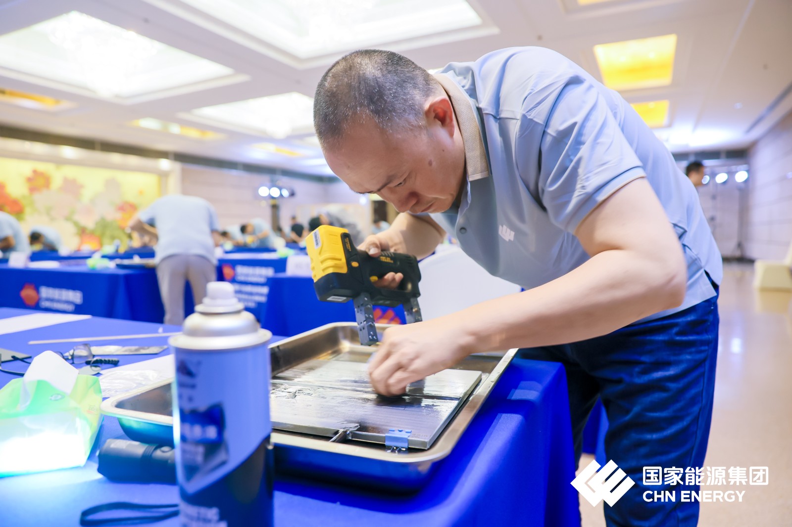 濟寧魯科助力國家能源集團2024年全國行業職業技能競賽,國家能源投資集團有限公司職業技能競賽(無損檢測員)實操賽場 ?磁粉檢測。