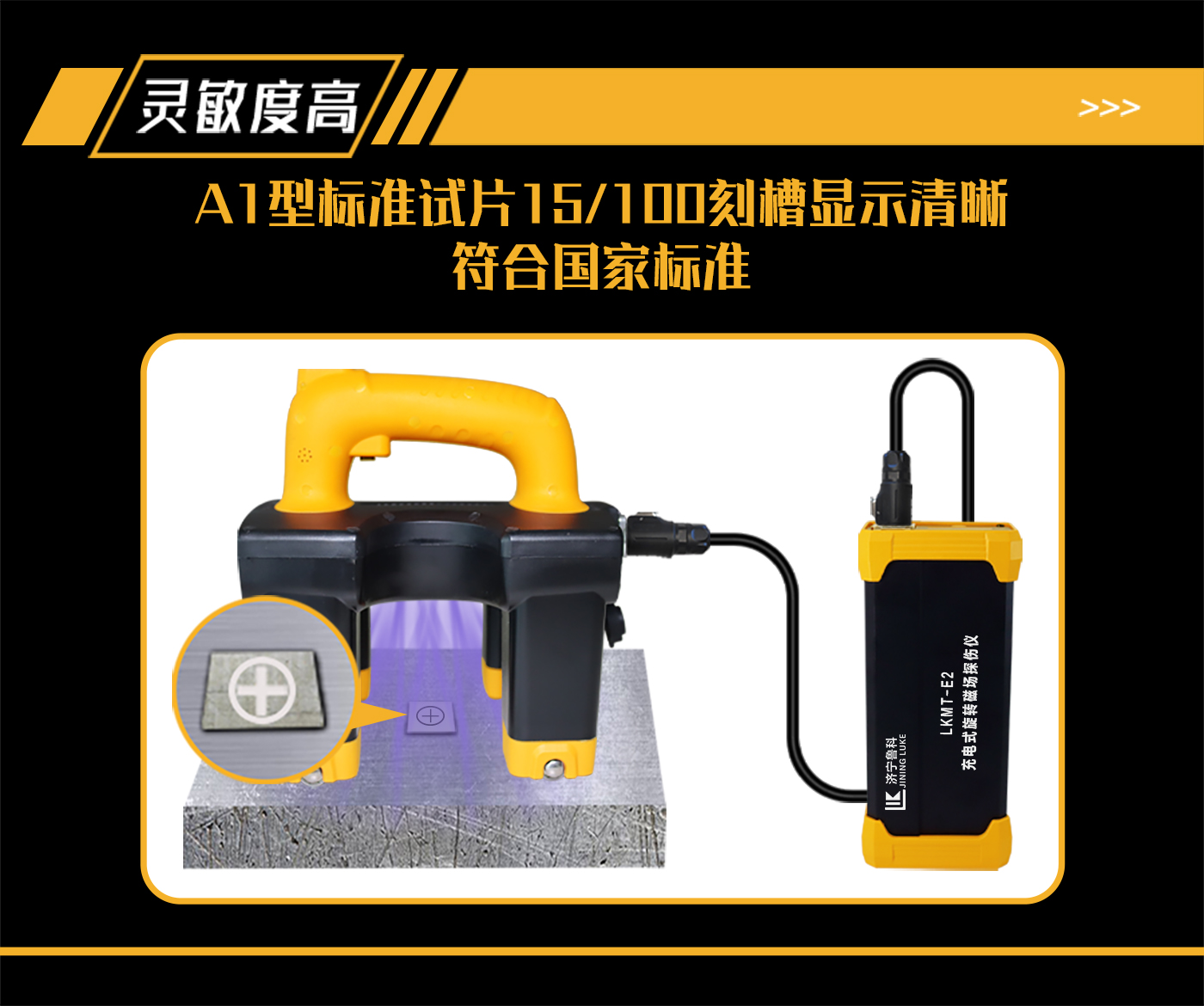 1、LKMT-E2寬焊縫旋轉磁場探傷儀,采用鋰電池電源供電,無需外接110V或220V電源即可產生交流旋轉磁場進行探傷;