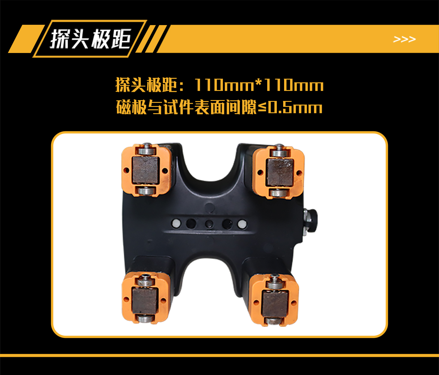 3、探頭極距:110mm*110mm,磁極與試件表面間隙≤0.5mm;