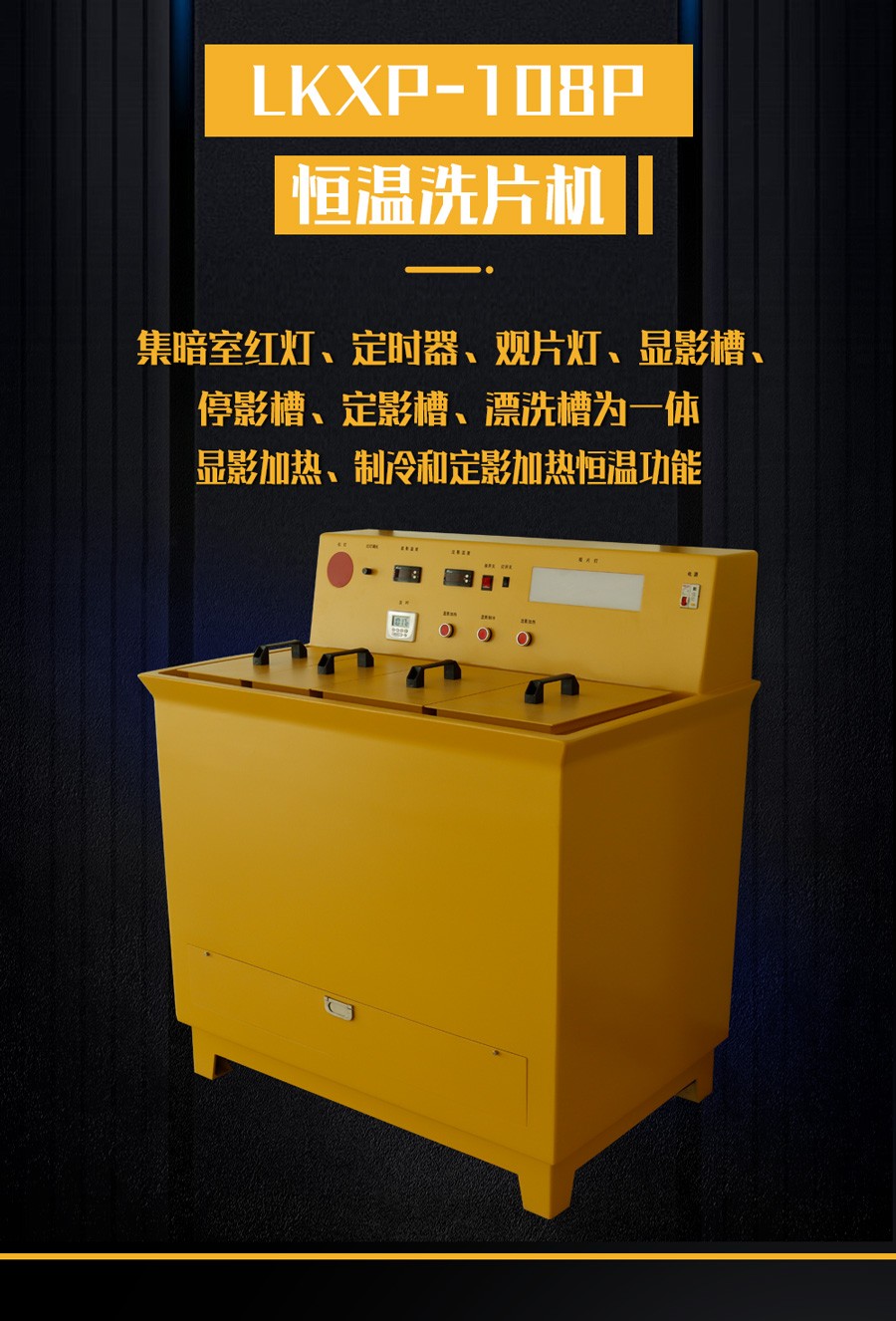 2、集多種功能與一體,顯影槽、停影槽、定影槽、漂洗槽、溫度表、暗室紅燈、定時器、觀片燈,結構緊湊,功能強大;