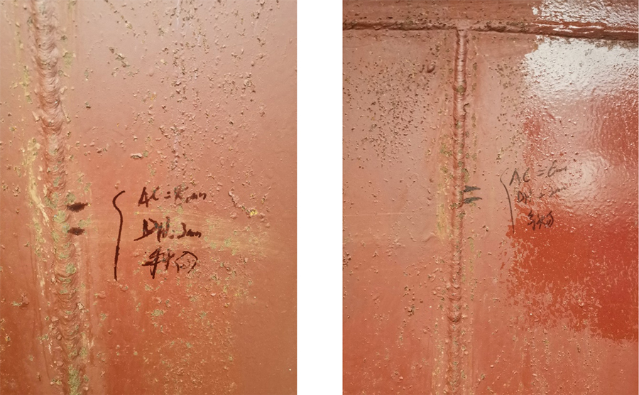 2、某煉化企業常壓儲罐,焊縫表面缺陷在役檢測