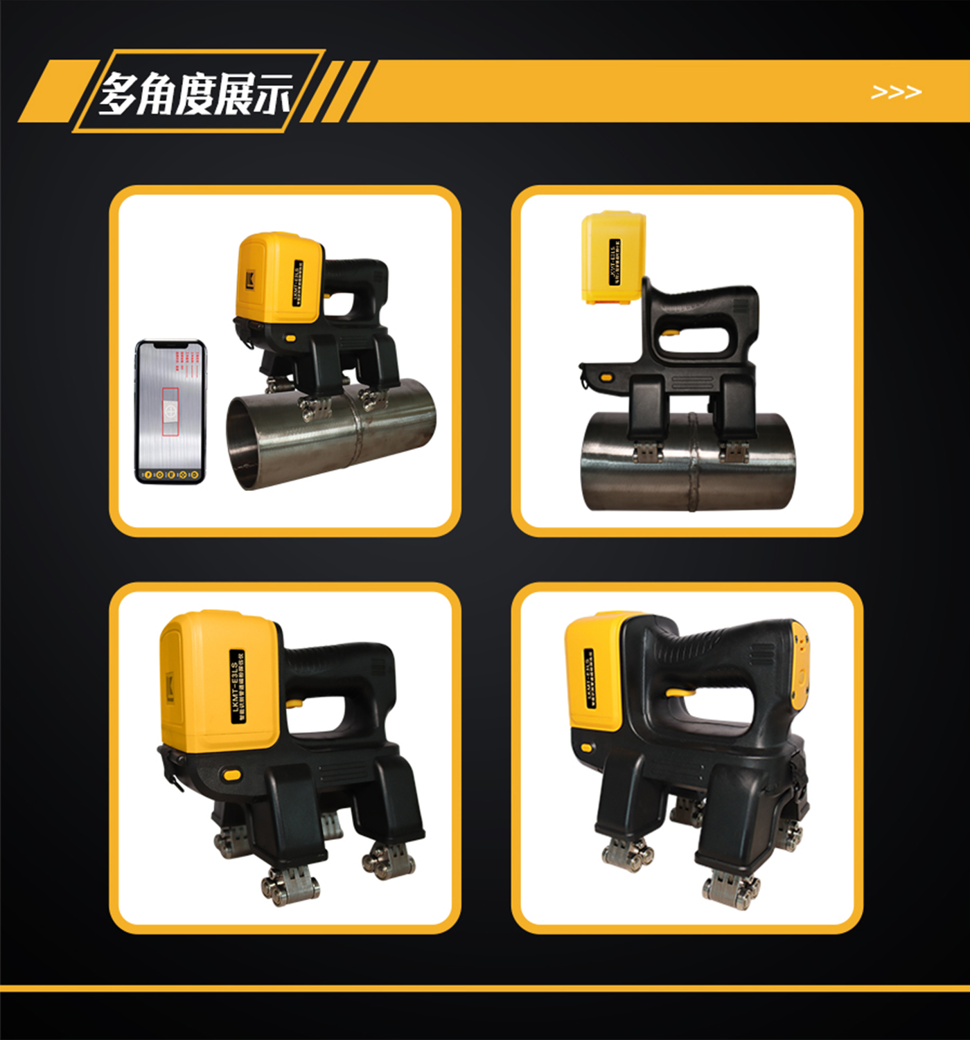 1、LKMT-E3LS一體式旋轉磁場管道磁粉探傷儀,探頭與鋰電池一體式設計,無需使用線鏈接;
