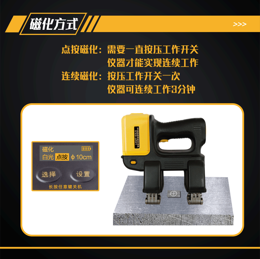 6、恒磁控制功能,因電量下降導致提升力不滿足探傷需求時自動斷電,保證探傷靈敏度;